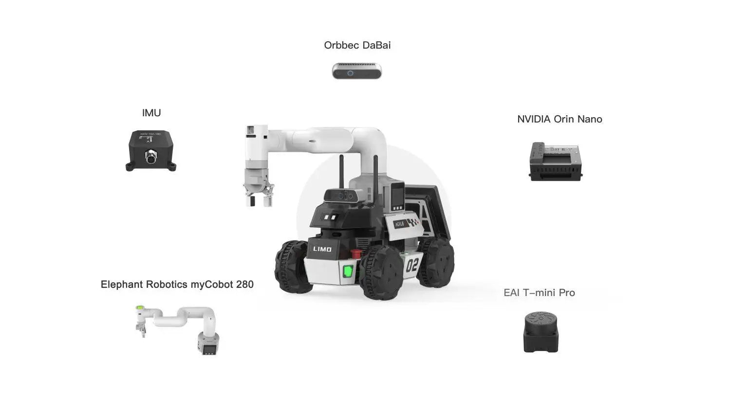 LIMO Cobot features a 6-DoF robotic arm supporting various end-effectors, allowing for precise mobile grasping to fulfill diverse task requirements