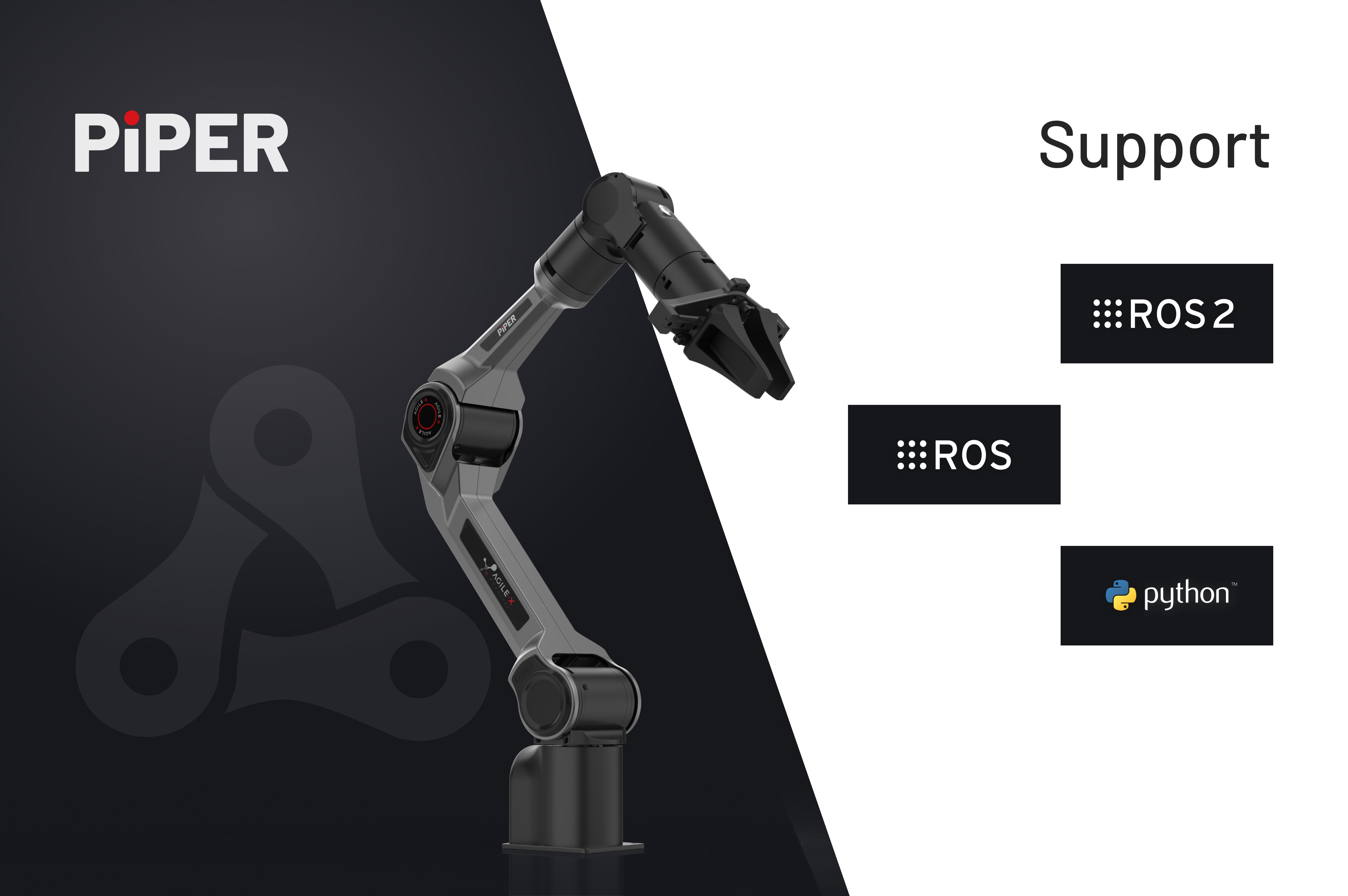 PiPER can be controlled via Python API and supports both ROS1 and ROS2, offering flexibility for developers and ensuring smooth integration across a variety of projects.